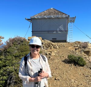 On the job, eleven historic lookouts came under her watch including those on Pearsoll Peak, Wildhorse Prairie, Dutchman Peak, Hershberger Mountain, and Squaw (now Acorn Woman) Peak. Throughout her career, she had the good fortune to partner with Sand Mountain Society on many projects, which made her daily life so much easier that upon retirement, she was eager to join their Board of Directors.
